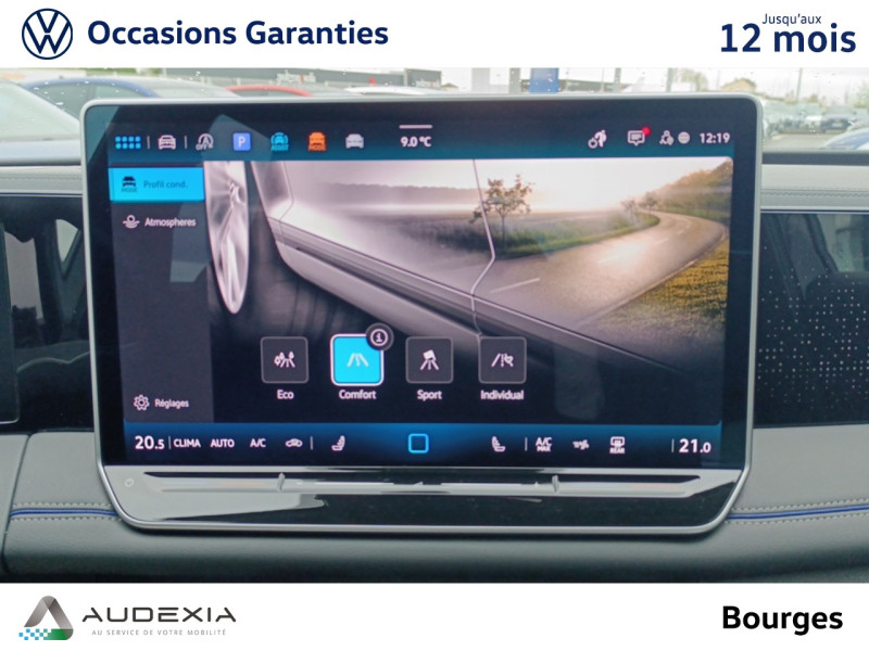 Drive Experience Control: Sélecteur de profil de conduite avec écran OLED tactile – Permet d'ajuster le volume, le profil de conduite ainsi que les "Atmosphères" – Appuyer sur le sélecteur pour afficher les profils de conduite, passez votre doigt sur l'écran tactile pour basculer sur le choix des "Atmosphères" – Des "Atmosphères" sont déja paramétrées dans le véhicule mais vous pouvez créer vos propres atmosphères en définissant une playlist, un affichage Digital Cockpit, un éclairage d'ambiance, un niveau sonore et une tonalité
