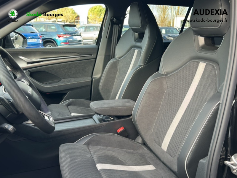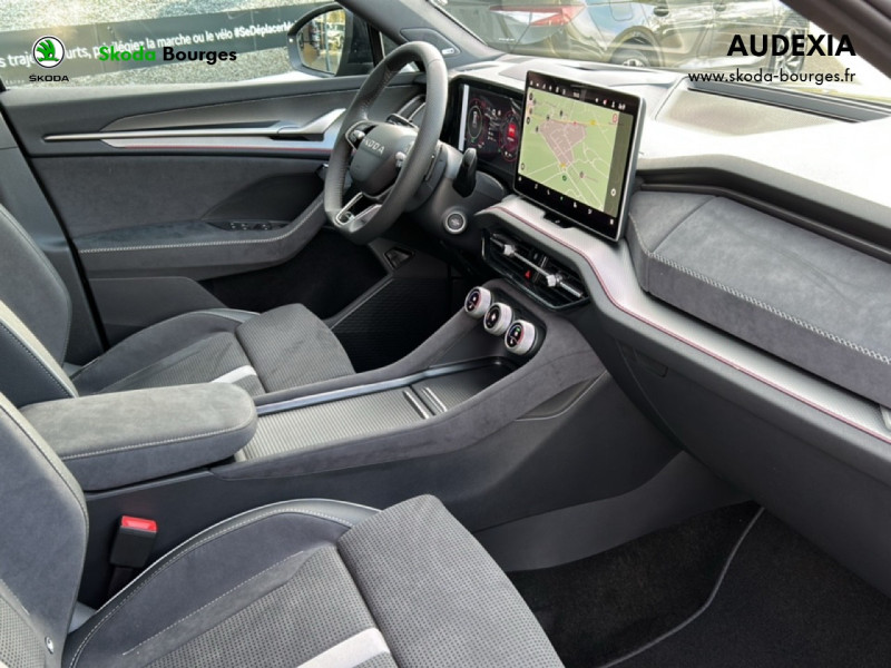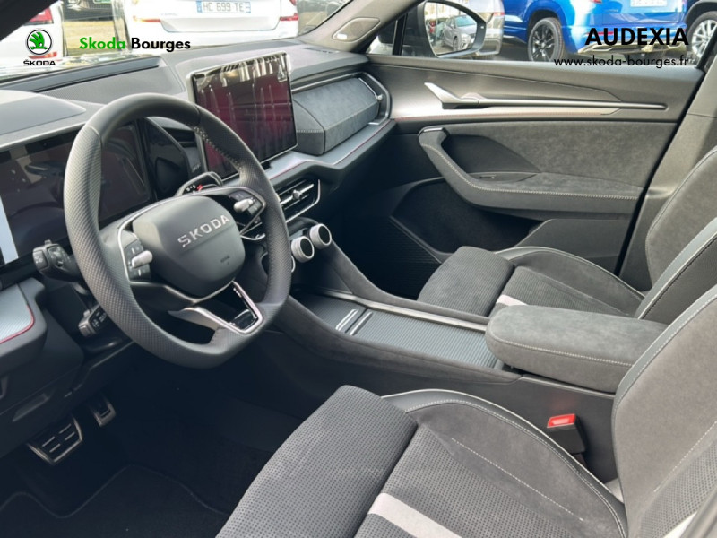 Design intérieur SportLine sellerie tissu suédine noir perforé avec bande blanche au milieu et matériau synthétique noir