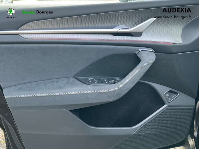 Insert décoratif chrome foncé sur planche de bord/contreportes inserts en continuité de la poignée de porte Unique Dark Chrome (rendu alu mat), Habillage tissu suédine noir sur planche de bord/contreportes/poignée de maintien de porte